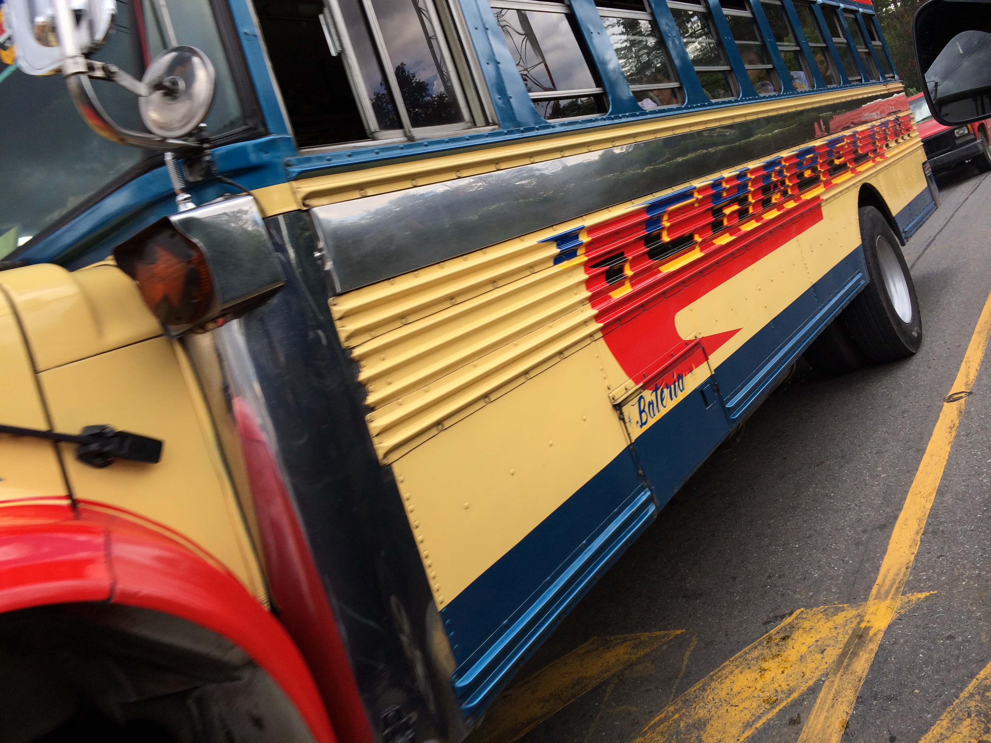 This is a chicken bus. It’s one of the major ways of transportation in Guatemala. You can take an hour drive from city to city for forty cents. But with that comes tight space, loud vendors, and the Guatemalan experience. But it was a ton of fun on our way to Pana with up to 90 passengers on one bus.